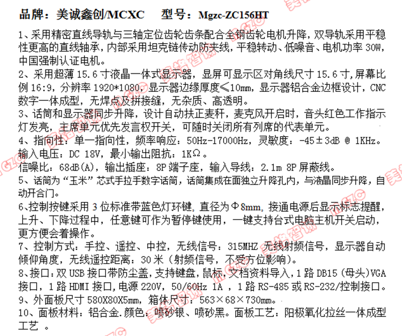 • 超薄15.6寸液晶屏集成话筒升降一体机
